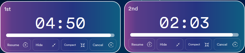 Each timer will display the numerical time and a countdown progress bar.